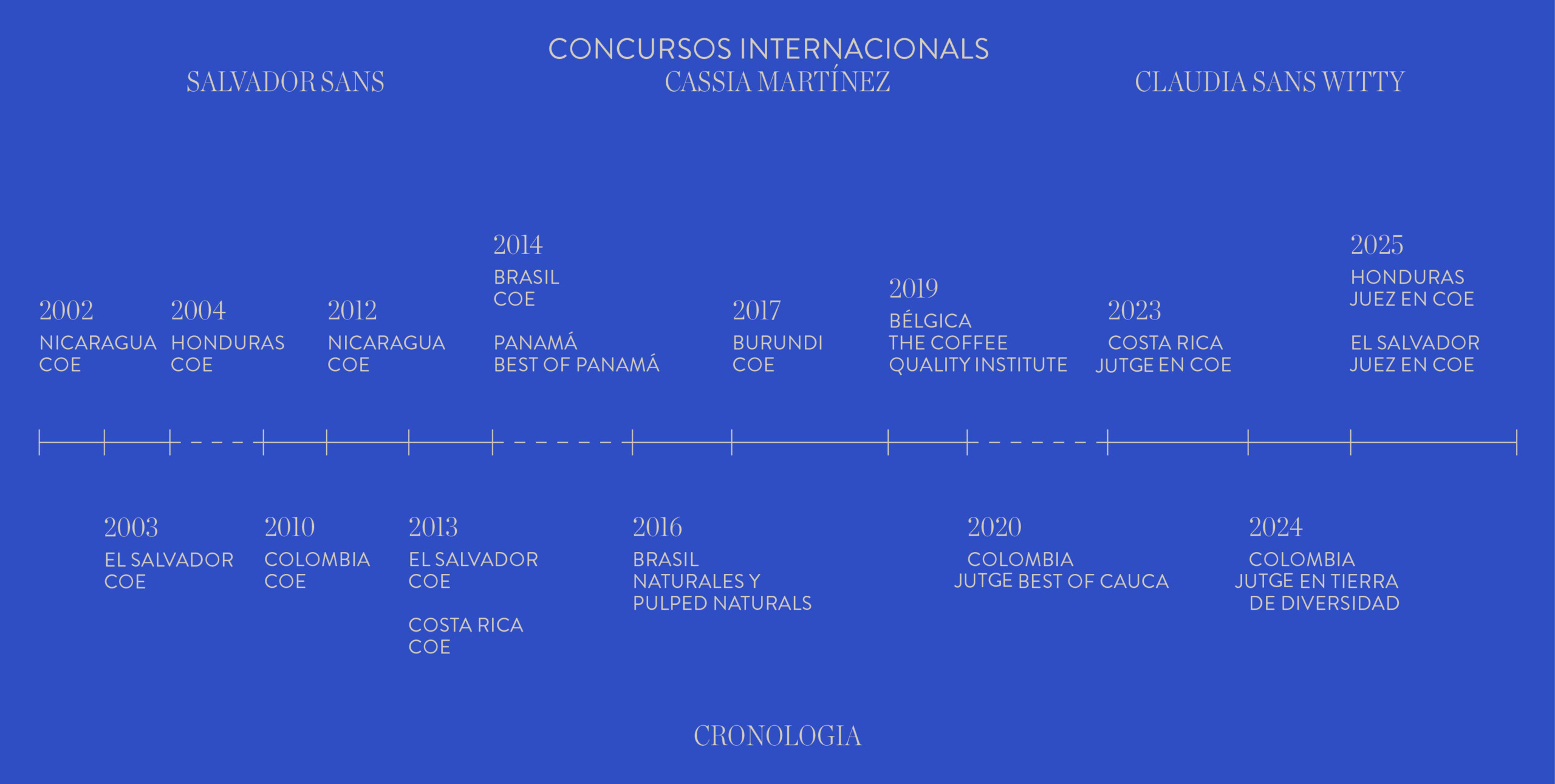 En la imatge que acompanya aquest article es recull la cronologia completa de concursos internacionals i formacions professionals realitzades per l’equip de Cafés El Magnífico. Et convidem a revisar-la amb detall per a descobrir el recorregut professional, la diversitat d’especialitzacions i el compromís continu amb l’excel·lència que defineix al nostre equip des de fa anys.