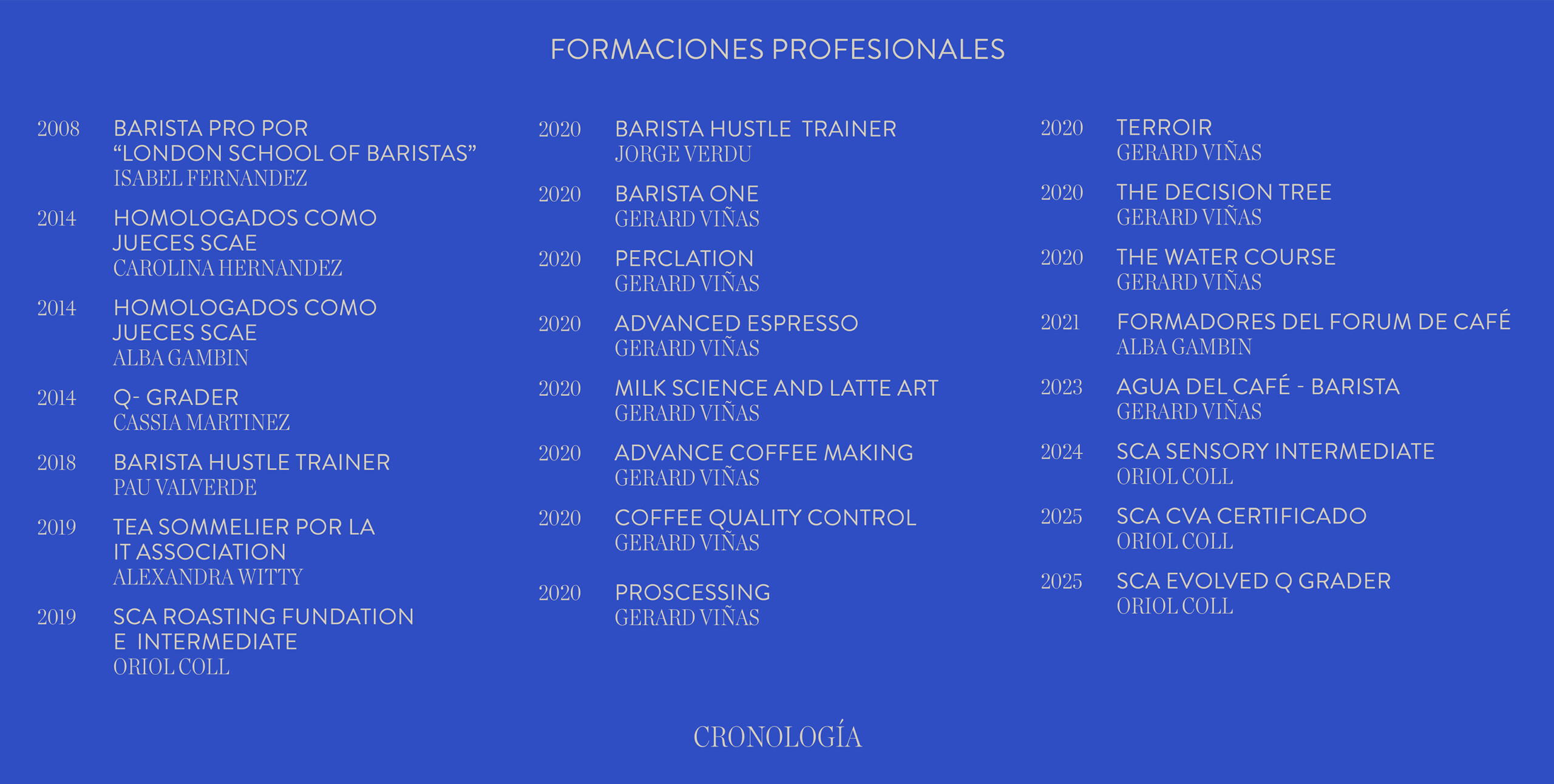 En la imagen que acompaña este artículo se recoge la cronología completa de concursos internacionales y formaciones profesionales realizadas por el equipo de Cafés El Magnífico. Te invitamos a revisarla con detalle para descubrir el recorrido profesional, la diversidad de especializaciones y el compromiso continuo con la excelencia que define a nuestro equipo desde hace años.